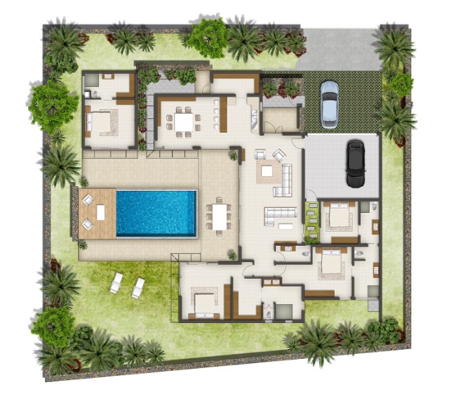 le lotissement comprend 22 villas entouré par une enceinte et surveillé en permanence par un gardien